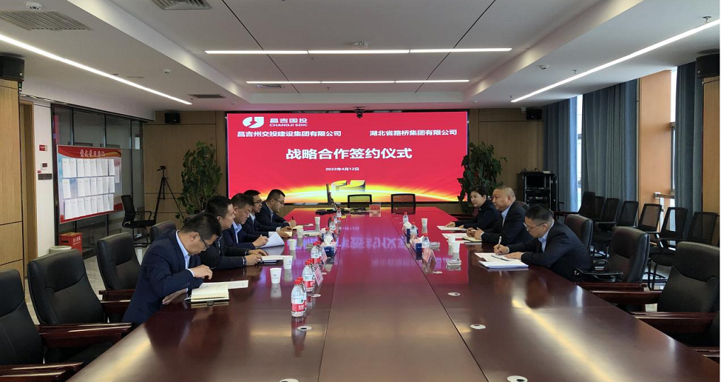 近日,湖北路桥新疆博畅路桥公司执行董事、总经理郝财国与昌吉州国投建设集团旗下交投建设公司总经理丁峰座谈交流,并代表湖北路桥与昌吉交投签署战略合作协议,昌吉州国投建设集团党委委员、副总经理马杰峰主持座谈。