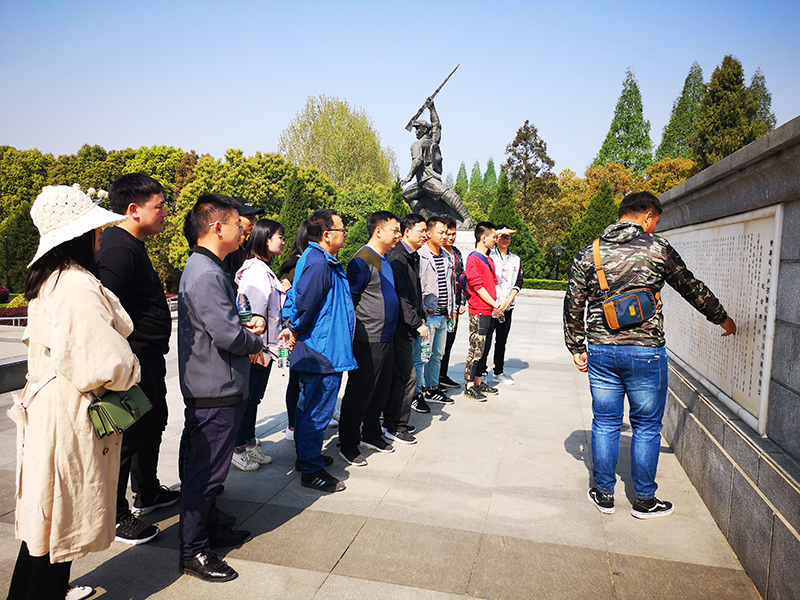 7日上午,项目部一行二十余人怀着无比崇敬的心情来到教育活动的第一站——黄麻起义和鄂豫皖苏区革命烈士陵园。迈过大门,穿过一片林荫大道,来到巍然耸立的烈士纪念碑前,大家瞻仰先烈,认真阅读碑文,感受革命先驱为家、为国的大无畏牺牲精神。“小小黄安,人人好汉。铜锣一响,四十八万。男将打仗,女将送饭”,纪念碑背面这首简单的童谣更是敲击着我们的内心:是无数的烈士用他们的生命和鲜血换来我们今天的幸福生活,我们还有什么理由不珍惜?!